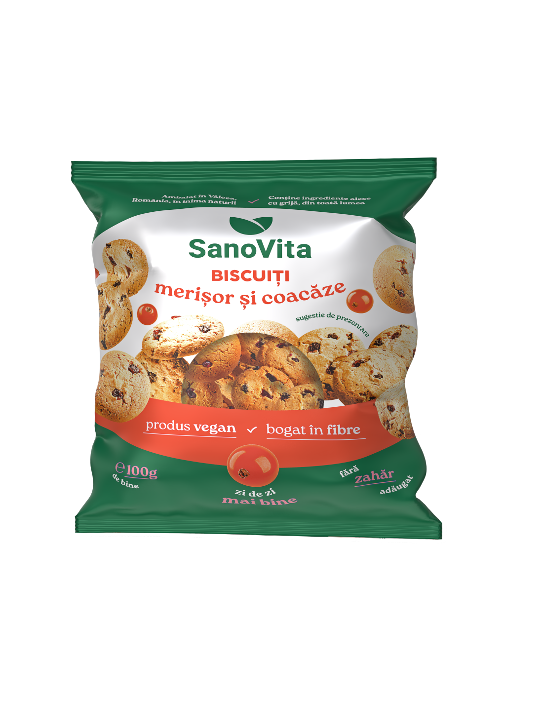 Gust dulce-acrișor, cu fructe BUNE și textură ușor crocantă. Realizați din făină de ovăz, merișoare infuzate în suc de mere și coacăze, acești biscuiți aduc împreună savoarea fructelor și beneficiile fibrelor naturale. Mustul de struguri le oferă o dulceață blândă, iar uleiul de cocos contribuie la aroma lor fină și textura plăcută.