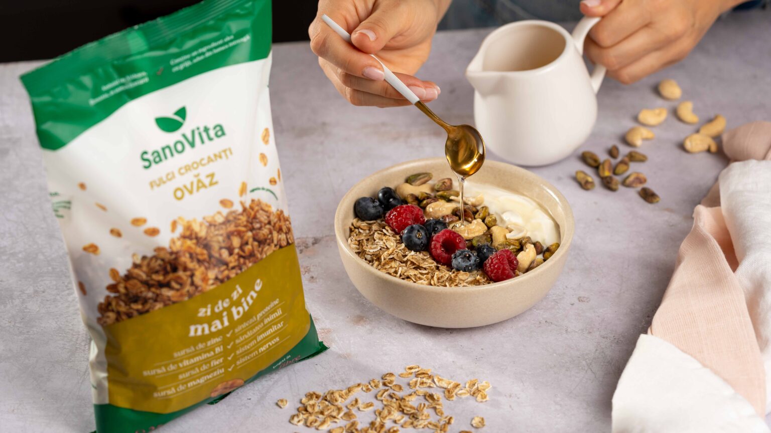 - cereale integrale, mixuri de nuci pentru energie