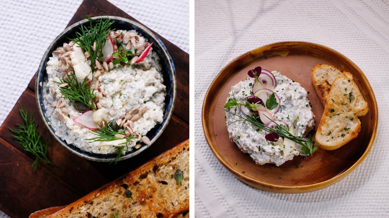 Imaginează-ți o cremă vibrantă, cu conopida maruntită fin ca un cous-cous dens , întâlnind quinoa gătită, puțin crocantă, cu note de usturoi vioi și marar proaspăt. Această fuziune de texturi oferă un contrast între cremozitate și prospețime, iar maioneza vegană aduce o notă bogată, mătăsoasă, dar fără greutate. Presară peste pâine prăjită un mix de semințe ușor rumenite și vei simți cum fiecare mușcătură dansează între aromă, densitate și prospețime.