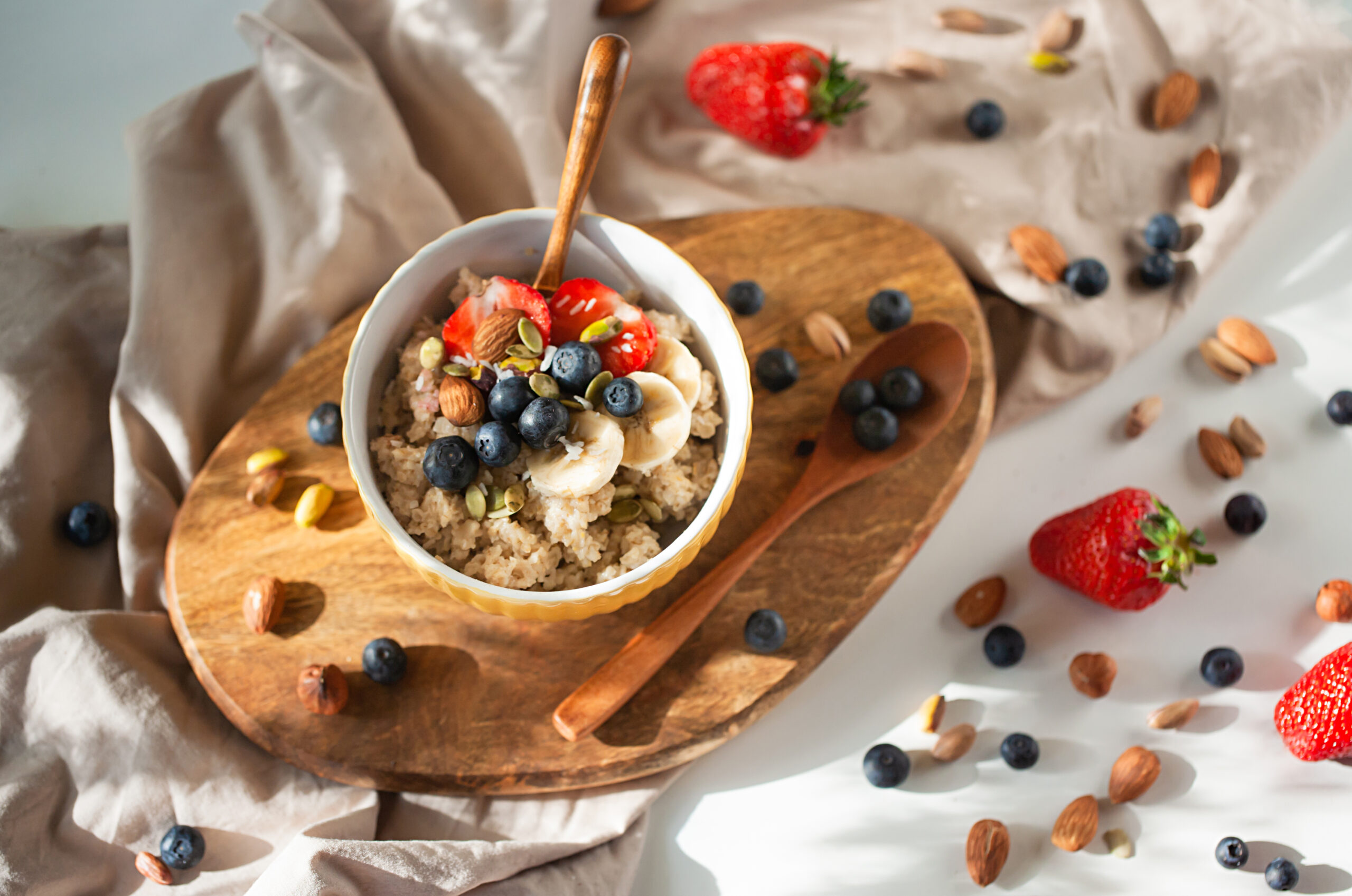 „Intestinul este numit adesea „al doilea creier” deoarece la acest nivel există o rețea extinsă de neuroni (sistemul nervos enteric) care comunică permanent cu sistemul nervos central. Această comunicare formează axa intestin–creier, o legătură bidirecțională prin care stresul influențează digestia și absorbția nutrienților, iar sănătatea intestinală influențează răspunsul emoțional și hormonal. Tot la nivel intestinal se secretă neurotransmițători și hormoni, inclusiv serotonină, iar o mare parte din sistemul imunitar este localizată aici. Din acest motiv, sănătatea intestinală și starea psihică sunt strâns legate. Atunci când flora intestinală este dezechilibrată, pot apărea inflamație intestinală, care, în timp, poate determina afecțiuni ale sănătății altor organe, precum ficatul și pancreasul, alături de un răspuns inflamator sistemic, cu impact asupra digestiei, nivelului de energie și stării emoționale. În schimb, o microbiotă echilibrată susține secreția corectă de serotonină, contribuind la o dispoziție mai stabilă, la reglarea apetitului și la o adaptare mai bună la stres. Alimentația are un rol esențial în menținerea acestui echilibru. Fibrele prebiotice din ovăz hrănesc flora benefică, mixurile de semințe și semințele de chia sau cânepă aduc acizi grași omega-3 și magneziu, importanți pentru funcția nervoasă, iar alimente precum leguminoasele, quinoa sau tofu completează mesele prin suplimentarea aportului de fibre, proteine și vitamine din complexul B, necesare metabolismului energetic. Integrarea constantă a acestor alimente, într-un program regulat de mese, contribuie la stabilitatea digestivă și metabolică și ajută organismul să răspundă mai eficient la stres. Nu este vorba despre soluții rapide, ci despre construirea unui echilibru real prin alegeri simple, repetate zilnic.”