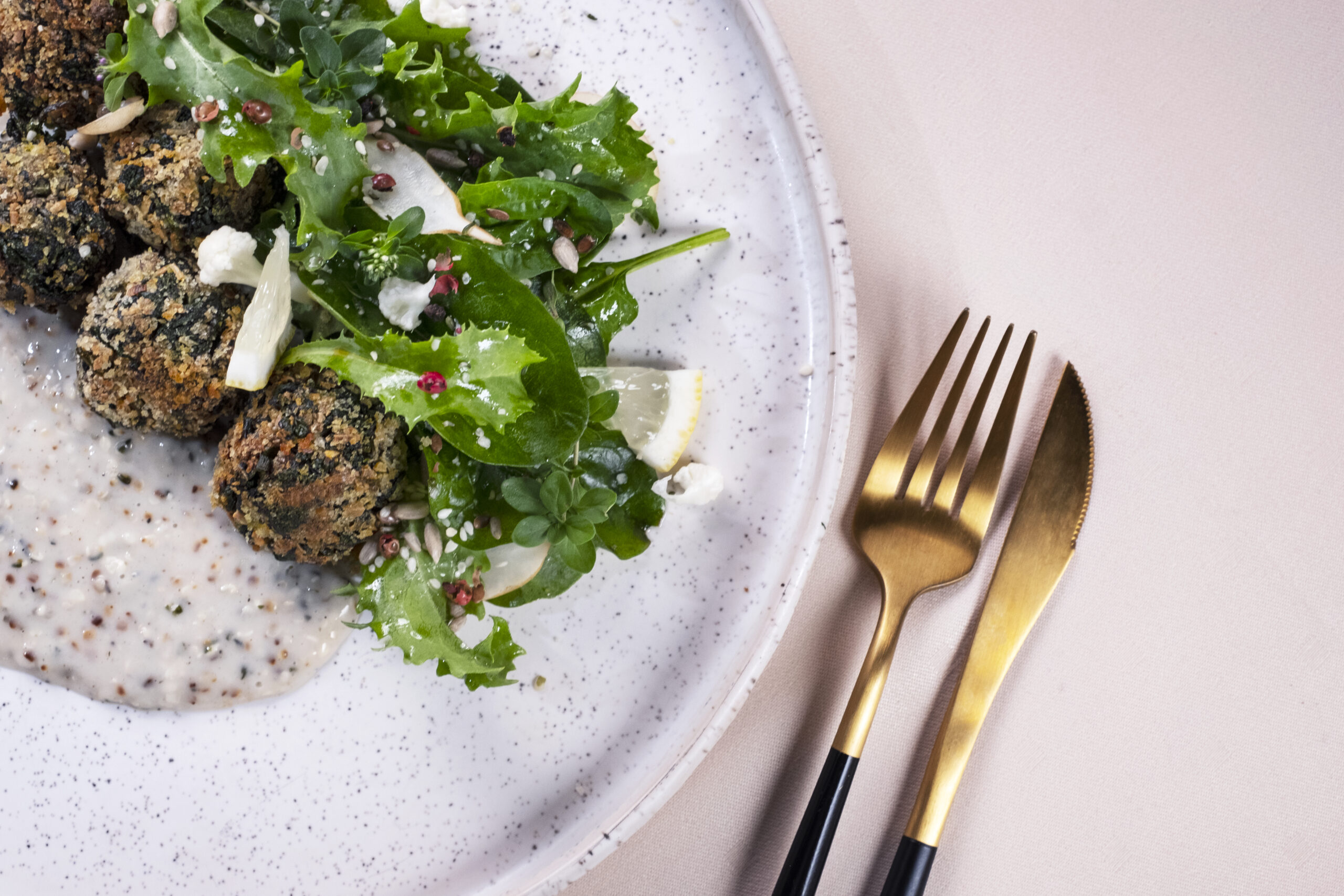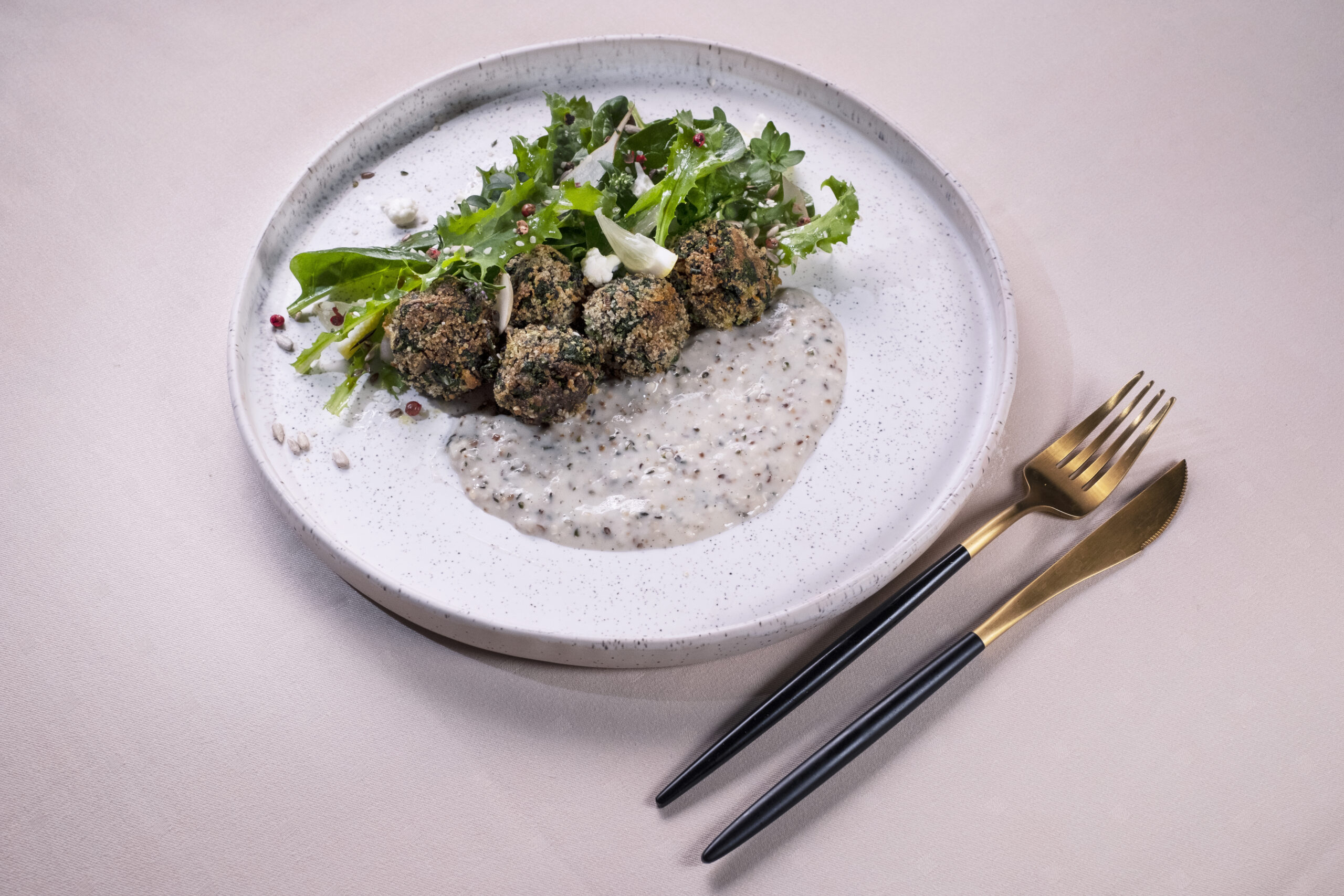 Găluște de tofu cu spanac în sos de cânepă