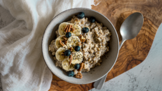 Ovăzul este o cereală integrală bogată în fibre solubile (beta-glucani), care ajută la scăderea colesterolului și la reglarea glicemiei. Este foarte versatil: poți prepara terci (porridge), îl poți folosi la biscuiți, clătite, granola sau ca ingredient de bază pentru rețete sănătoase de mic dejun.