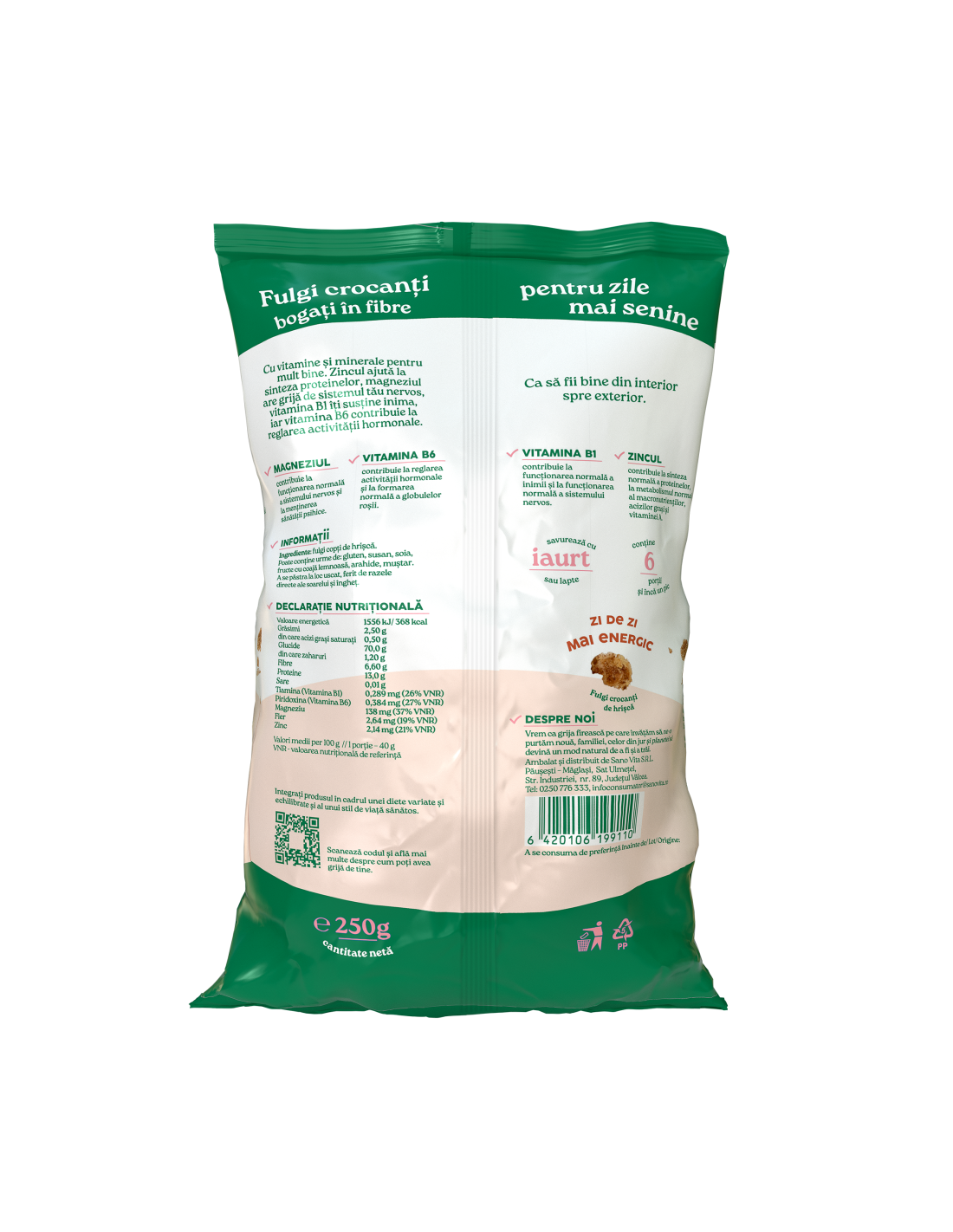 Cu vitamine și minerale pentru mult bine. Zincul ajută la sinteza proteinelor, magneziul are grijă de sistemul tău nervos, vitamina B1 îți susține inima, iar vitamina B6 contribuie la reglarea activității hormonale. Ca să fii bine din interior spre exterior.