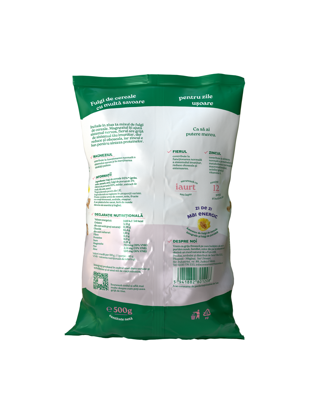 Include în ziua ta mixul de fulgi de cereale și porumb. Magneziul îți ajută sistemul nervos, fierul are grijă de sitemul tău imunitar, dar reduce și oboseala, iar zincul e bun pentru sinteza proteinelor. Ca să ai putere mereu.