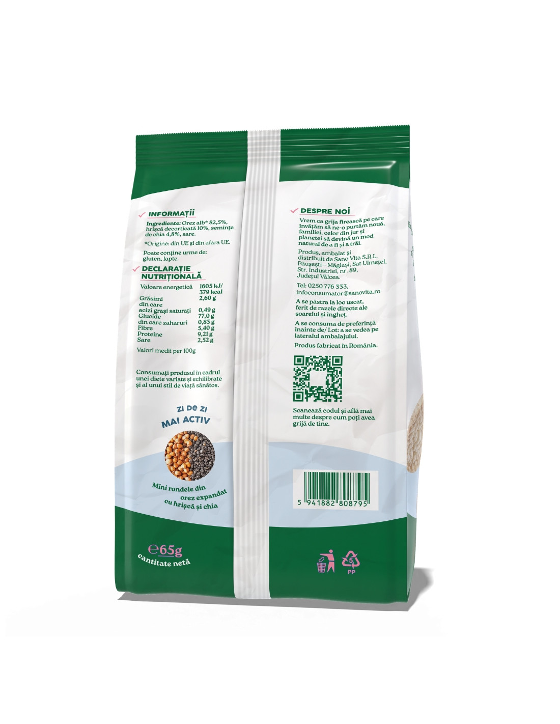 Orez alb* 82,5%, hrișcă decorticată 10%, semințe de chia 4,8%, sare. Poate conține urme de: gluten, lapte.