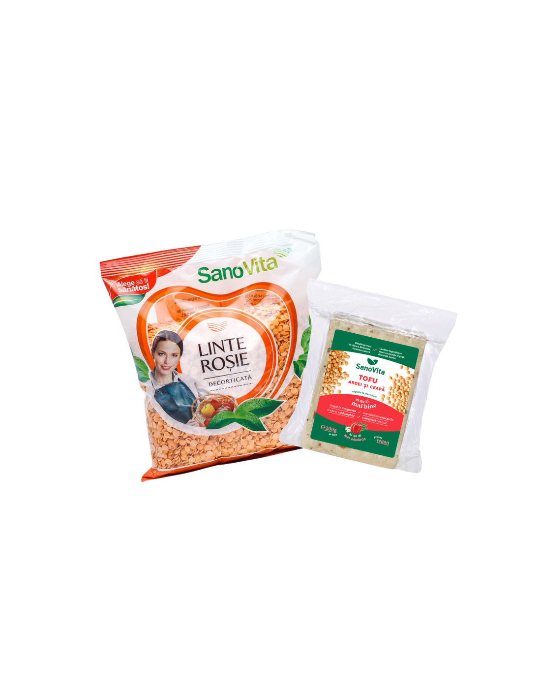 Pachetul combină lintea roșie decorticată, ideală pentru supe și preparate rapide, cu tofu cu ardei și ceapă sterilizat, un mod de producție care permite transportul și depozitarea lui în afara frigiderului. Acest tip de tofu este ușor de luat în vacanțe sau la drum, fiind o sursă practică și gustoasă de proteine vegetale pentru alimentația de post sau meniurile vegetariene.