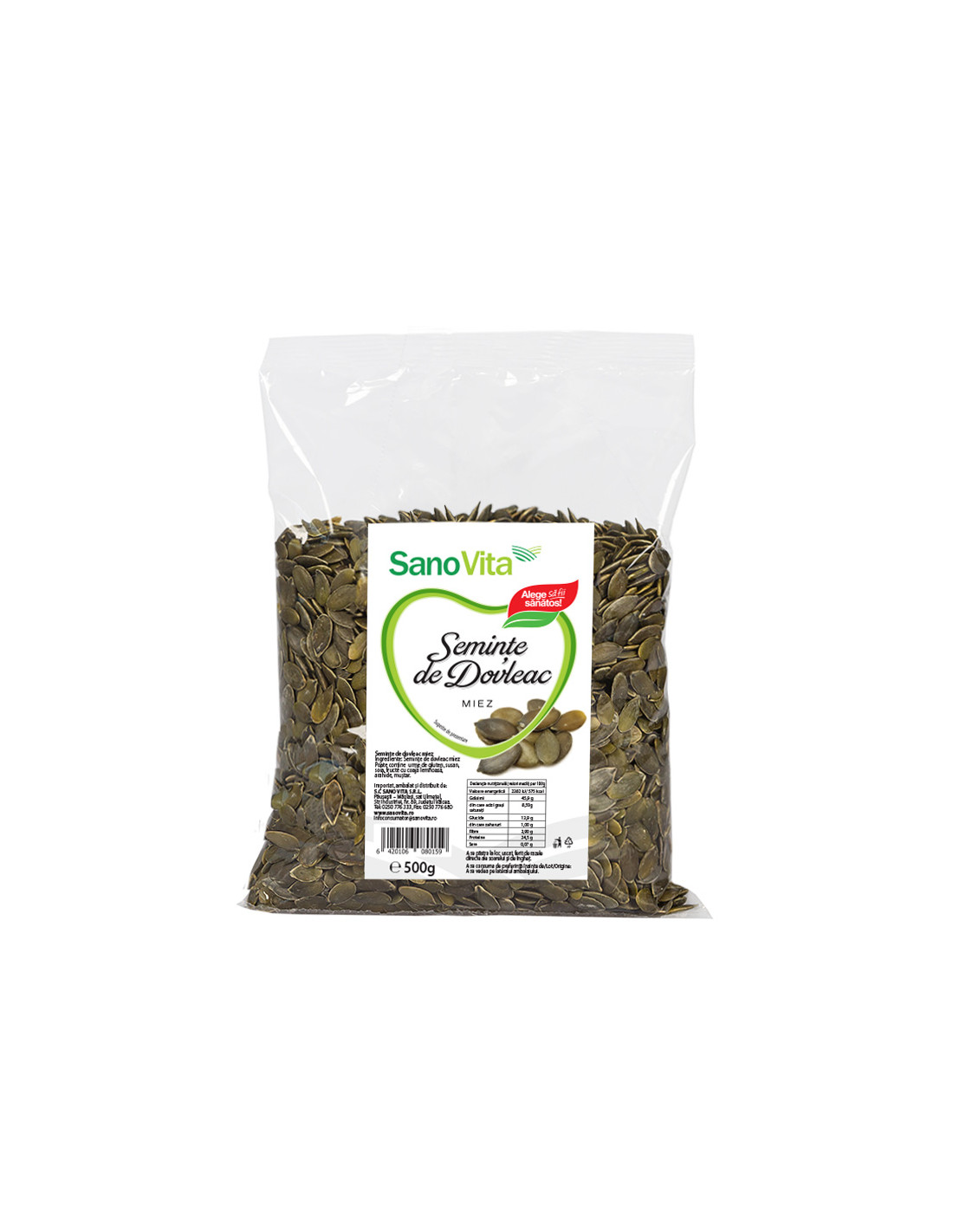 De exemplu, semințele de dovleac pe care le comercializează SanoVita sunt crude și nu provin din culturi modificate genetic, iar ele ajung la consumatori în pungi vidate, tocmai pentru a împiedica alterarea lor.